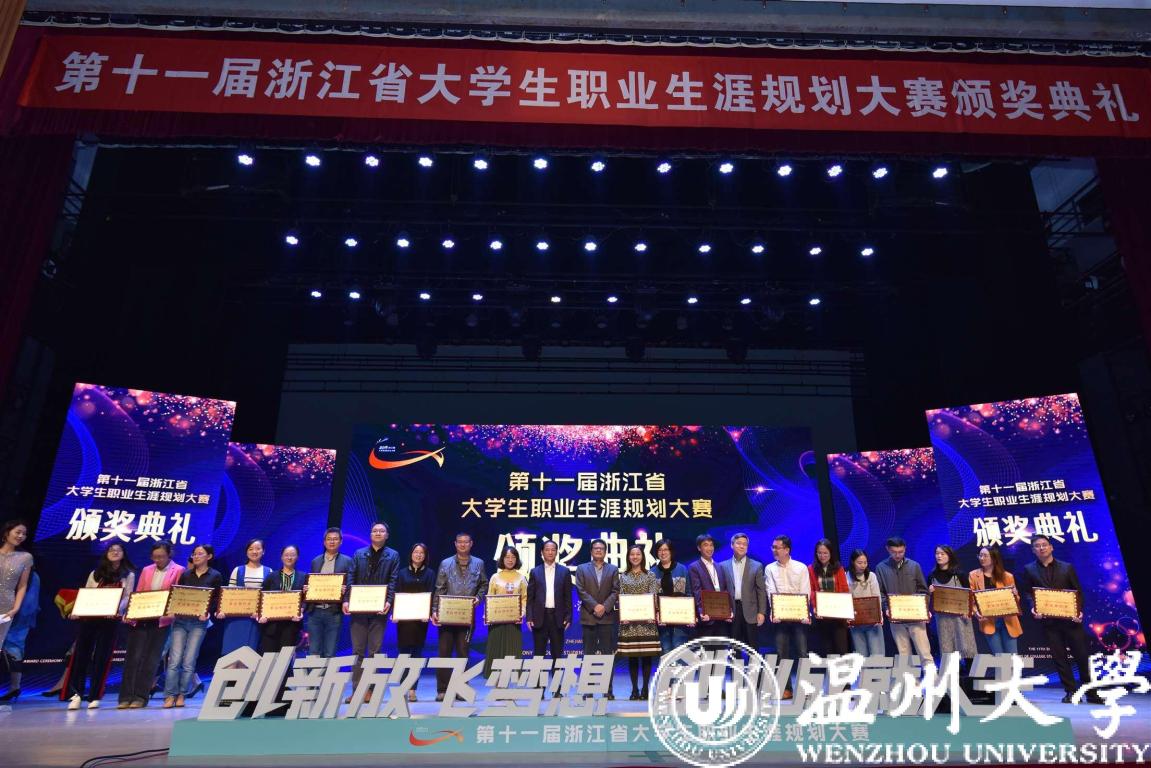 浙江省大学生职业生涯规划大赛是省一级学科竞赛。 全省105所高校2万多名大学生参加本次赛事,619个项目进入省级复赛,最后160个项目进入总决赛。其中,亚洲成人 美术与设计学院潘影团队参赛项目《旧艺——"非"时尚技艺的传承与领导者》获得本研组创新创意类一等奖,潘影同学并获得“最佳个人风采奖”。教育学院卢家俊同学参赛项目《由心发声 伴生而行——一名男学前音乐教师的成长之旅》获得高职高专组职业规划类一等奖。金晨怡、周志明、杨鹏、严晓秋、周奇、杨婧6名老师荣获“优秀指导师奖”称号。