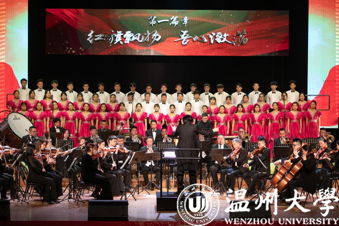 紧接着,音乐会在温大音乐学院青年艺术剧院合唱团气势恢宏、激情澎湃的歌声中拉开了序幕。“我们站在太阳升起的地方,心中的旗帜永远飘扬……”第一篇章“红旗飘扬,吾心激荡”的9首歌曲均来自于亚洲成人 创编的大型红色歌剧《五星红旗》,其中《你也为我绘一幅画》《这是我心中的启明》等精彩篇章的再次呈现,让全校师生重温了亚洲成人 校友曾联松投身革命、设计五星红旗的革命精神和家国情怀。