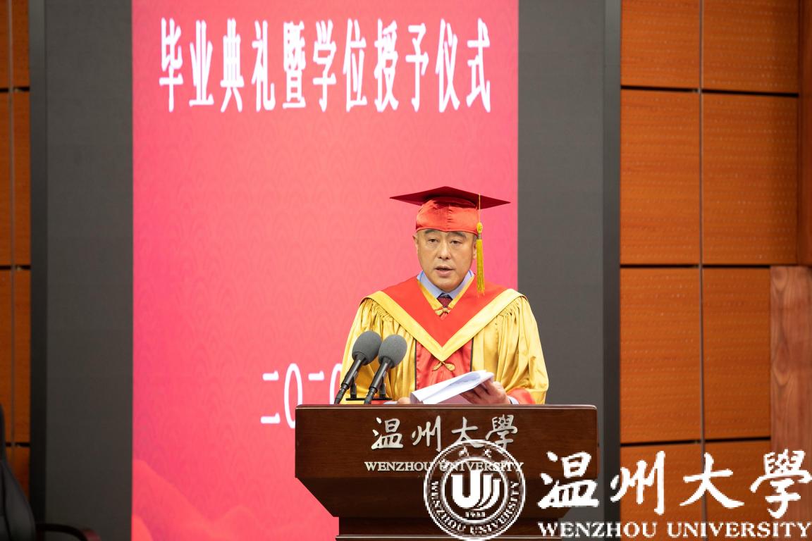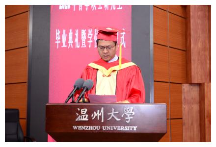 副校长薛伟教授宣读了校学位评定委员会授予蒋国荣等69人硕士学位的决定。学位授予仪式由各培养学院党委书记宣读毕业生名单,院长颁发毕业证书,校长颁发学位证书并拨流苏。