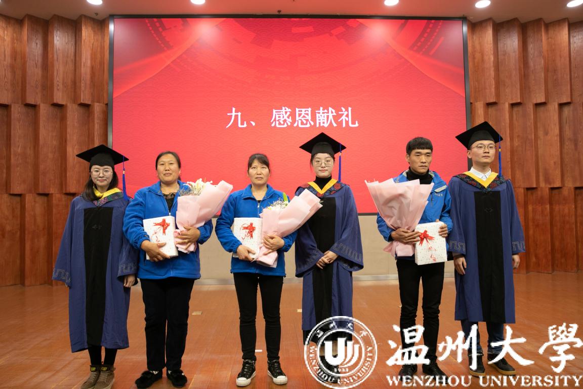 暖场视频把大家带回到最美的温大回忆中,回顾了在校生活和学习。巍巍屹立的教学楼、埋头做研究的实验室、每天上课的教室、伏案苦学的自习室、色香味俱全的食堂大锅饭、温馨与自然完美结合的天鹅湖,更有爱护、教导多年的导师和辅导员以及默默坚守岗位的校园服务人员,校园的每一个角落、视频的每一帧都会是毕业后难以忘却的美好!
