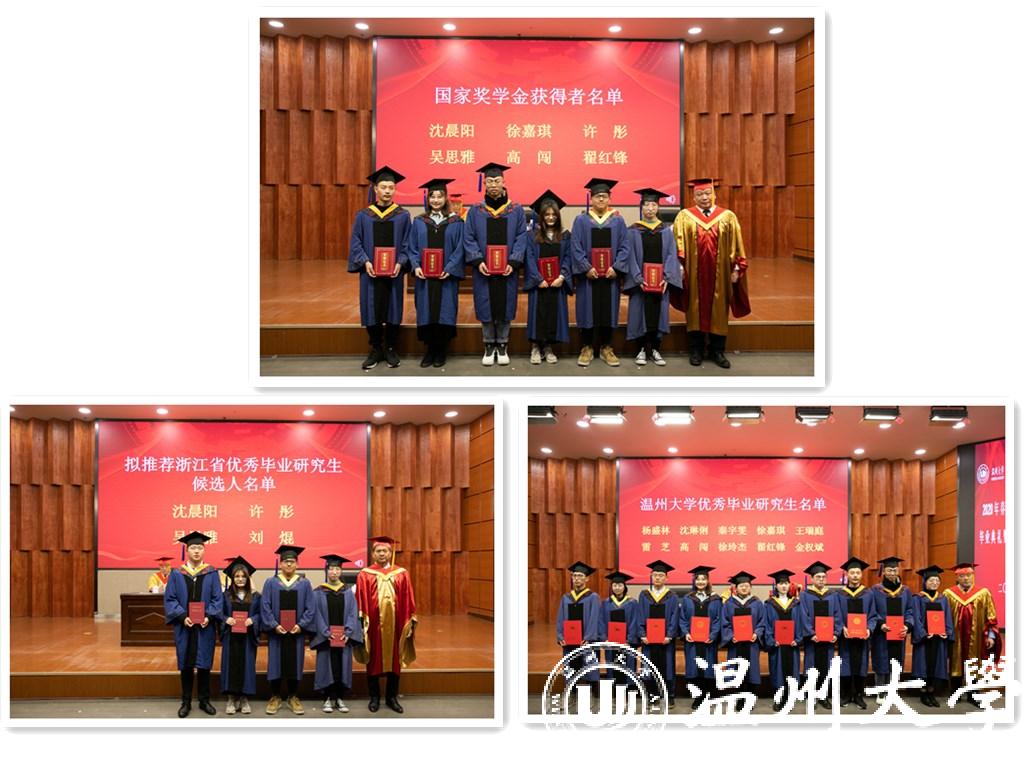 校党委庄兴忠副书记宣读了亚洲成人 优秀毕业研究生名单、拟推荐浙江省优秀毕业研究生名单和国家奖学金获奖者名单,校领导为20名获奖同学颁奖并合影留念。