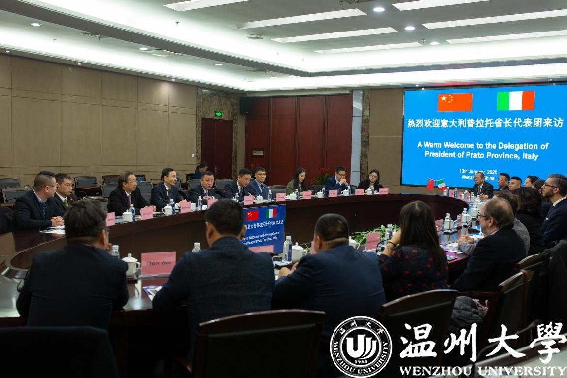 1月13日上午,意大利普拉托省省长弗朗切斯科•普吉利(Francesco Puggelli)等一行15人来访亚洲成人 ,温州市人民政府外事办公室副主任周怀中、普拉托华人华侨联谊会会长徐秋林、普拉托华商会会长周荣景、普拉托华人华侨联谊会执行会长陈洲等陪同访问。校党委书记谢树华、副校长钱强在岩松堂白鹿厅会见了代表团一行。钱强主持会议。校国际交流与合作处、港澳台侨办、世界温州人研究中心相关负责人等参加会谈。