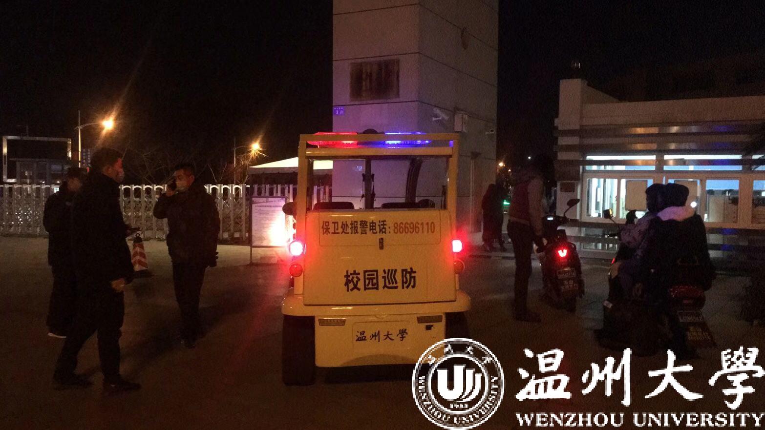 巡视校园就是他的一项工作。他说:“1月21日,温州出现首例后,我们判断疫情形势会日益严峻,所以当机立断从22日开始启动校园出入管控方案,集中力量加强校园管理,实行最严格的门禁管理和检查制度,3个校区、5个生活区、7个大门实行半封闭管理,各区只设置一个出入口,并在各出入口张贴疫情防控通告;严禁校外车辆及人员入校,对确需进校的师生员工凭校园一卡通等有效证件做好登记,并经查测体温后才允许进入”。一纸告示把茶山镇上习惯每天来校园晨练的村民挡在了外面,也把很多来校继续做科研实验的师生挡在了外面。部分老师不理解,认为没有必要管控地那么严厉。孙安梭笑着说:“那时候,一天会接到七、八十个电话,每位要进校的人员都有自己的理由,说实验做了一半,不让进校园,前功尽弃!急着要赶基金申报材料等等,我也只能耐心地做解释工作,因为谁也不知道B是谁?特别是后来茶山出现病例后,我们更是绷紧了神经,学校管控措施升级,非必要人员一律不得进入校园,除了医务人员,还有运送医疗应急物品的人员和电信、移动等后勤保障人员,他们入校也要仔细询问、登记检查后进校。”