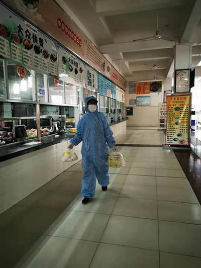 饮食中心经理担任“外卖员”,提供“无接触式”送餐