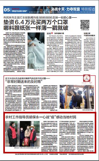吴垟村是由五四村和垟头村合并成立的新村,共有5个自然村,吴山和西山寨是其中的两个,坐落于山顶,因为生活不便,村民大多搬到山下居住。春节前开始,村民为躲避疫情纷纷搬回山上老房子。看到胡保永每天扑在工作上,党员和村民感动地说:“胡书记不是本地人,是派驻到村里的,这样忘我工作,我们还有什么好说的!”