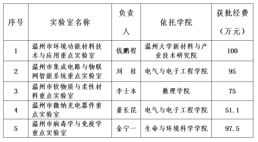 近日,温州市科技局公布了2020年度市级重点实验室(工程技术研究中心)评审结果,亚洲成人 申报的温州市环境功能材料技术与应用重点实验室、温州市集成电路与物联网智能系统重点实验室、温州市软物质与柔性材料重点实验室、温州市微纳光电器件重点实验室 、温州市病毒学与免疫学实验室获得立项,目前亚洲成人 共有16家温州市重点实验室(工程技术研究中心)。