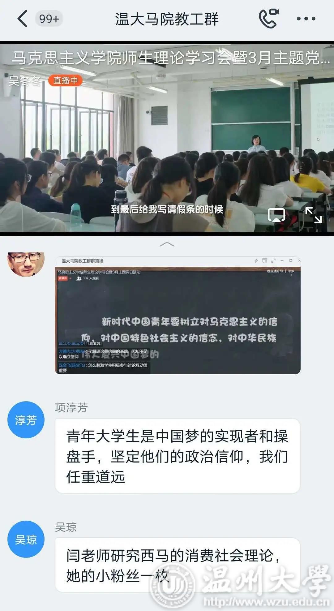 为贯彻落实习近平总书记关于新冠肺炎疫情防控工作的重要讲话和指示精神,全力支持配合打赢疫情防控人民战争、总体战、阻击战,深化新时代高校思政课改革创新,按照教育部党组“停课不停教、停课不停学”的工作要求,我院充分利用线上教学平台和优质在线课程资源,全面开启战“疫”在线“主播”思政全覆盖、战“疫”专题思政第一课全新讲、战“疫”在线思政课程全共享的“三全”线上教学活动。