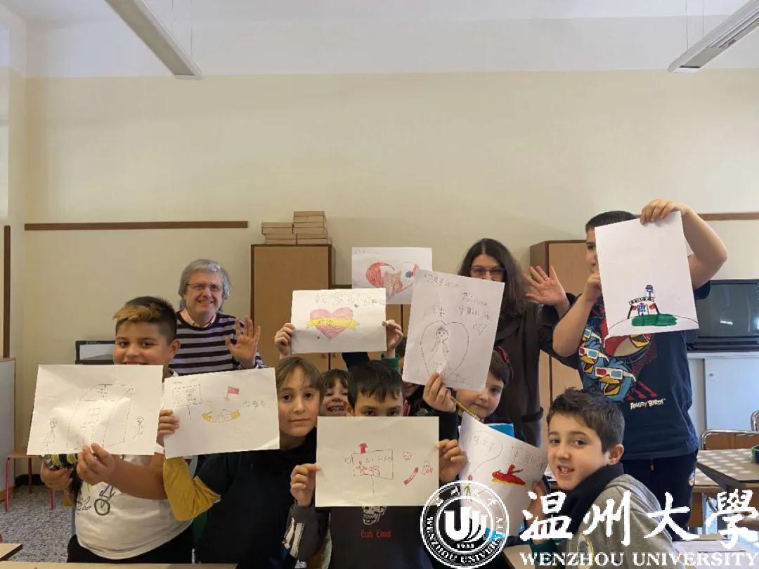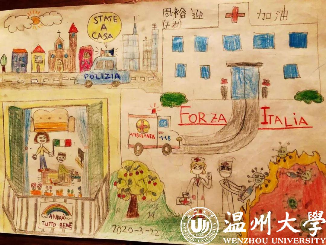 期间,蔡思思还组织任教的意大利BETLEM学校三、四、五年级学生上疫情知识普及课,给孩子们观看中国抗疫纪录片。那几节课上,蔡思思很好地引导孩子们正确认识新型冠状病毒,了解预防措施,并动员孩子们用画笔给远在中国的小伙伴传递爱。