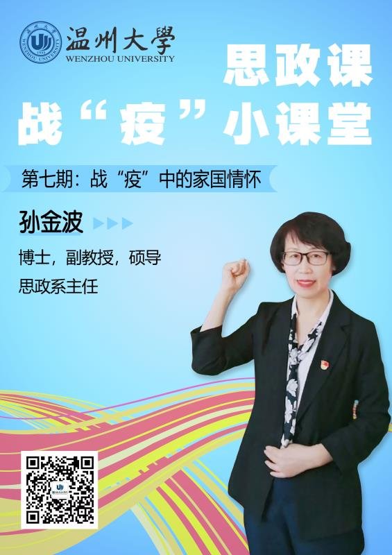 本期推出马克思主义学院思政系主任、副教授、博士孙金波老师思政课战“疫”小课堂:战“疫”中的家国情怀。