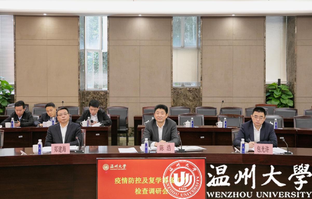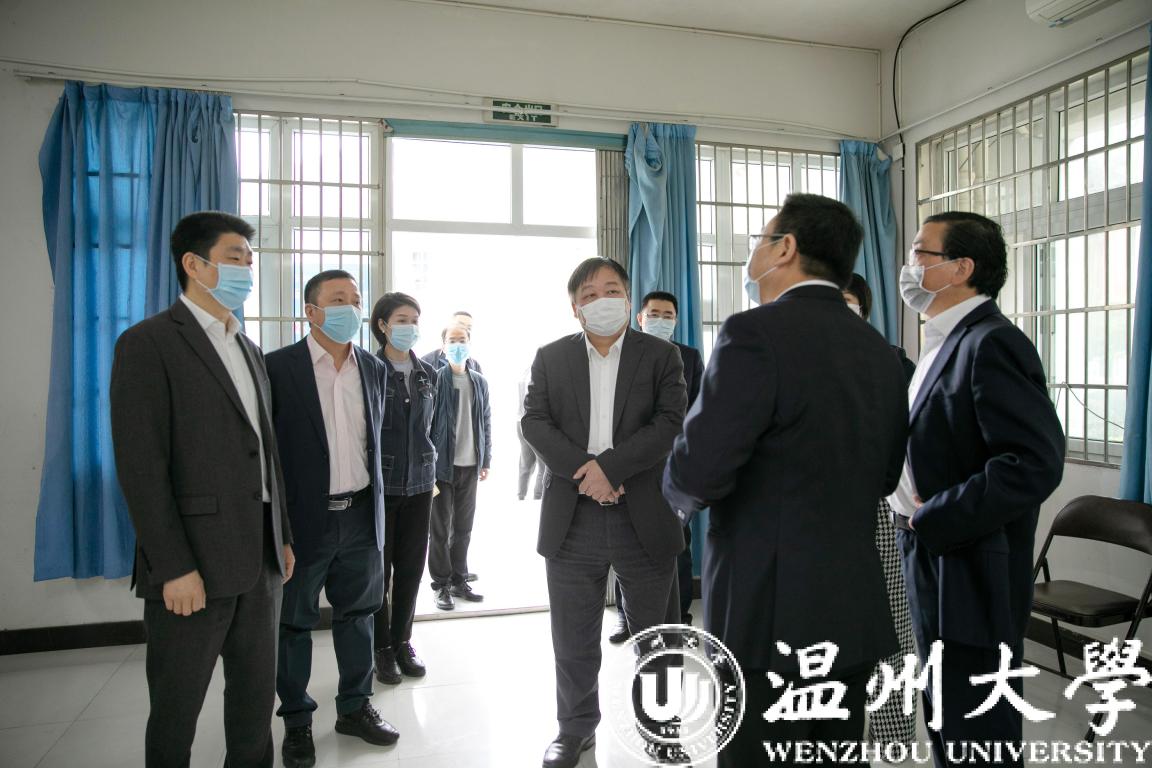 4月26日上午,温州市委副书记、政法委书记陈浩,市委副秘书长包光许,市教育局局长郑建海一行莅临亚洲成人 ,对学校疫情防控及复学筹备工作进行督导座谈。校党委书记谢树华、校长赵敏、副校长蔡曙光及党校办、后勤管理处、保卫处等相关部门负责人陪同。