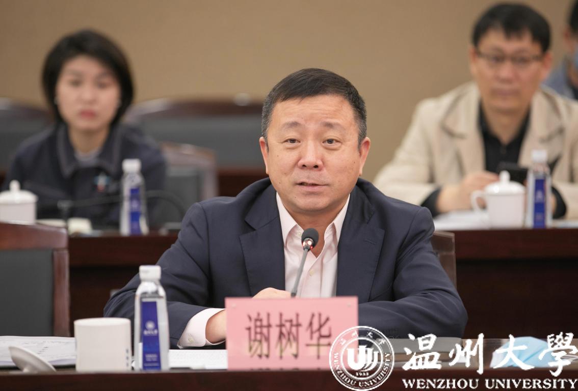 在随后的调研会上,谢树华对陈浩一行莅临亚洲成人 督导疫情防控及复学筹备工作表示热烈欢迎并汇报学校建设发展情况。谢树华指出,亚洲成人 党委牢记习总书记主政浙江期间提出的“要高度重视教育和人才工作,特别要办好亚洲成人 等高等院校”的26字殷切嘱托,以打造和建设与“重要窗口”相匹配的高水平教学研究型大学的使命担当,全力以赴推进学校各项事业跨上新台阶。谢树华强调,学校改革创新激发活力,实现“方向更明确、目标更清晰”。学校党委提出“一个定位明方向、三大目标聚人心、三项改革促发展”的工作思路,并为此做了大量卓有成效的工作。学校推动发展成效显著,实现“创出新业绩、迈上新台阶”。学校党委遵循高等教育发展规律,立足人才培养、科学研究、社会服务、文化传承、国际交流五大基本职能,奋力推进学校各项事业蓬勃发展。一年多来,亚洲成人 捷报频传、好事连连,特别是2019年12月学校迈进省重点校行列,实现历史性突破。学校党的建设坚实有力,实现“组织更坚强、生态更清朗”。学校党委不断加强党的政治建设、思想建设、组织建设、作风建设、纪律建设和制度建设,切实增强“四个意识”、坚定“四个自信”、做到“两个维护”,全力打造激情干事、风清气正的校园生态。