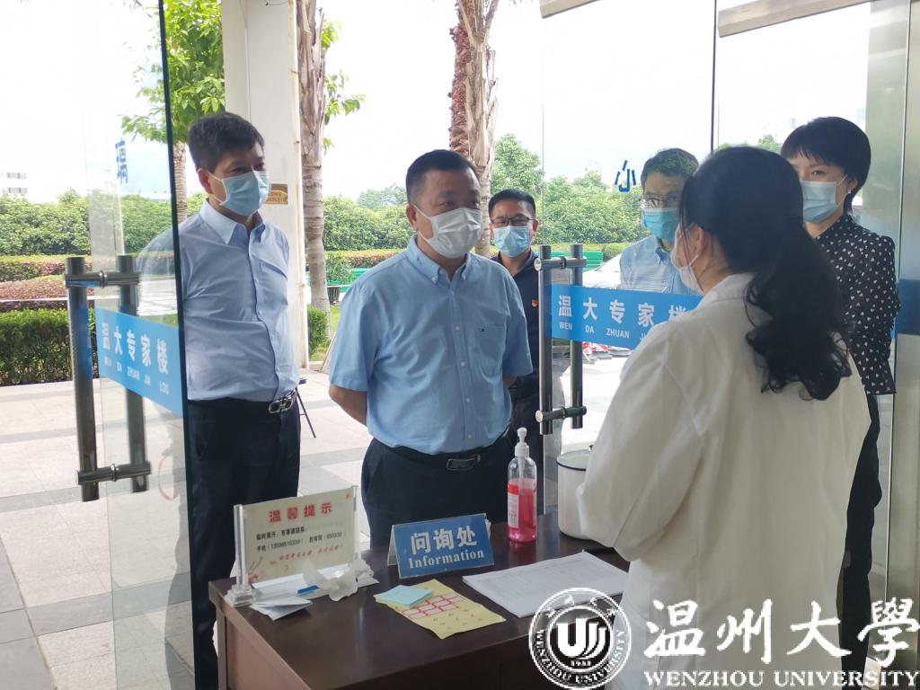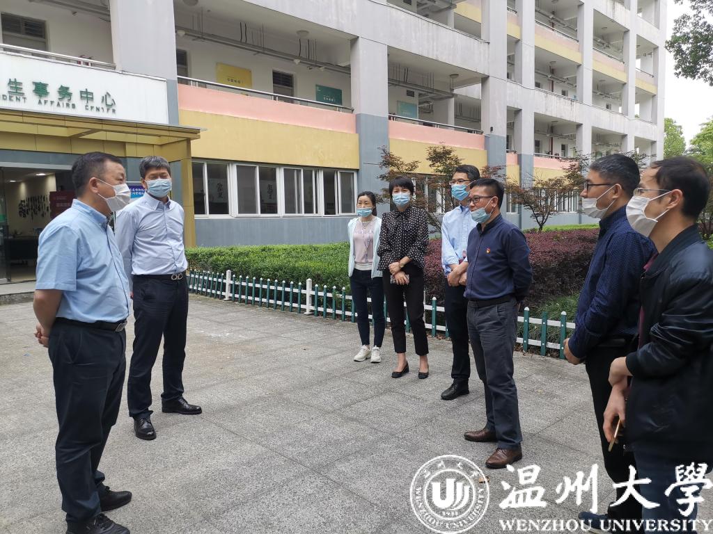 谢树华书记一行先后走访了溯初学区、超豪学区、步青学区和专家楼隔离点等场所。谢书记走进学生寝室,一一了解寝室同学返校生活和线上学习状况,询问他们目前在学习和生活中遇到的实际困难,叮嘱他们一定要做好个人防护。谢书记与返校学子亲切交谈,了解大家对学校前期返校工作各项安排的想法和对后续工作的的意见和建议。谢书记现场听取了研工部、学工部、资产经营公司有关学生公寓区疫情防控的工作汇报,就学生返校后严格落实网格化管理、体温晨晚检、应急响应处理等校园疫情防控工作进一步明确了要求。在专家楼隔离点,谢书记对一直坚守岗位、全力以赴抗击疫情、保障校园安全的后勤管理人员和医务人员表示感谢,详细询问了医务人员和后勤管理人员的工作安排和近期师生情况。