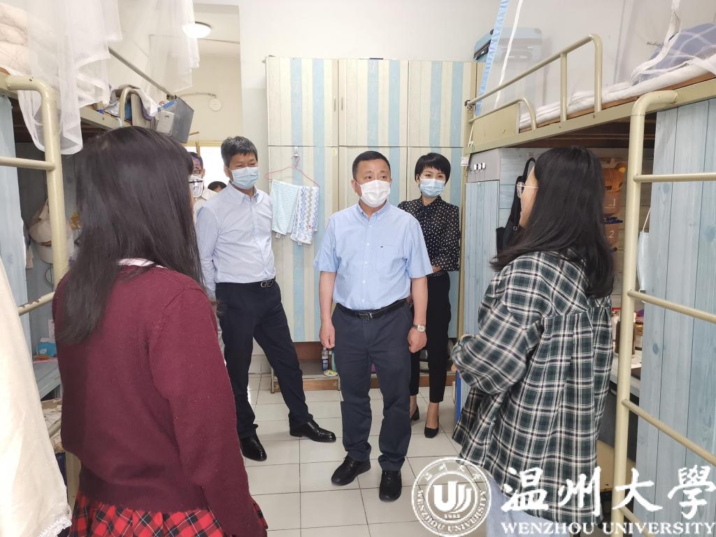 5月14日上午,校党委书记谢树华,党委副书记庄兴忠带领党校办、研工部、学工部、资产经营公司等职能部门负责人深入学生公寓看望学生,到专家楼隔离点检查指导疫情防控工作,慰问疫情防控一线工作人员。