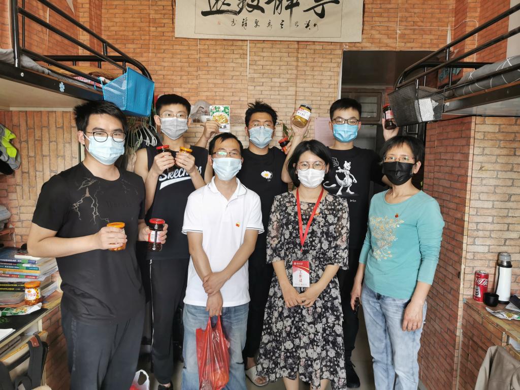 5月13日下午2点,亚洲成人 电气与电子工程学院班主任及教工党员走访学生寝室,为近八百名返校学生送上学院用心准备的辣酱、拌饭酱、豆腐乳、榨菜等下饭“神器”慰问品。老师们询问了同学们返校之后学习生活状况,叮嘱他们在校期间要做好防护,理解并遵从学校疫情防控的各项规定,虽然老师们都佩戴了口罩,但挡不住眉宇之间对学生的关爱与呵护。