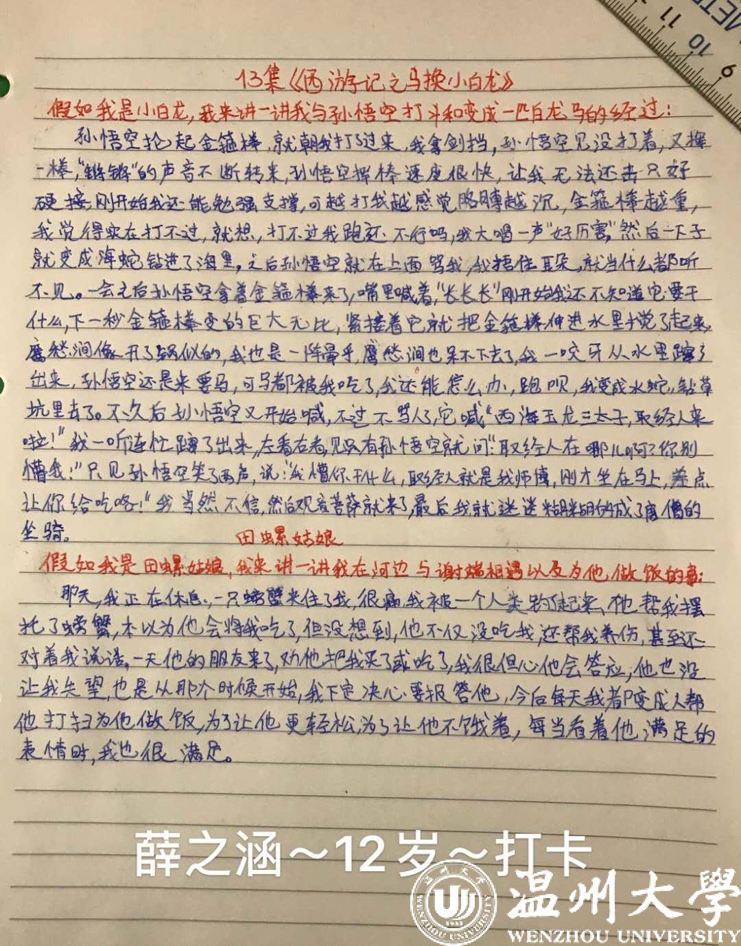 “悟空啊悟空,也不知道你还会不会回来……”5月12日,来自意大利的薛之涵小朋友在学习群中“打卡”《西游记——第12集“紧箍咒”》。这是她参加亚洲成人 举办的首届“亲情中华·为你讲故事”网上夏令营的第12天,之涵妈妈夸她“中文越说越流利,每天都有进步”。