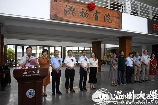 仪式由教育学院党委书记何毅主持,教育学院院长孙芙蓉介绍溯初书院的成立背景及概况,徐和昆副校长和学院领导共同为溯初书院揭牌并致辞。揭牌仪式上还宣读了北京师范大学教育学部、长三角高校书院联盟及江苏师范大学敬文书院等单位的贺信。贺信中,华东师范大学孟宪承书院、江苏师范大学敬文书院等兄弟书院对亚洲成人 溯初书院的成立致以最热烈的祝贺,并衷心祝愿溯初书院秉持“光大国族、造福人群”的温大精神,培育更多德智体美劳全面发展的优秀人才。