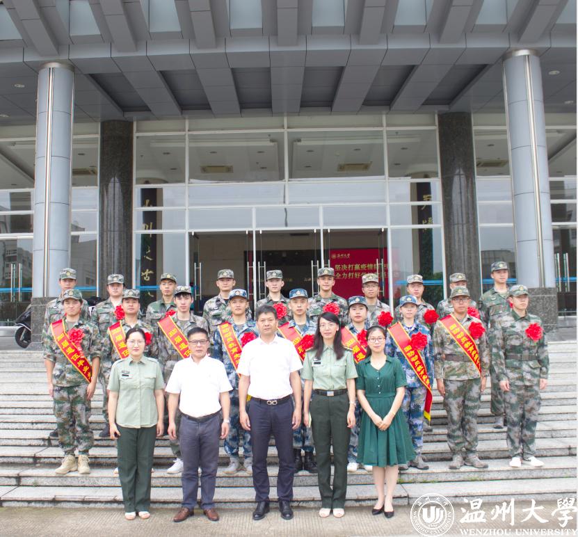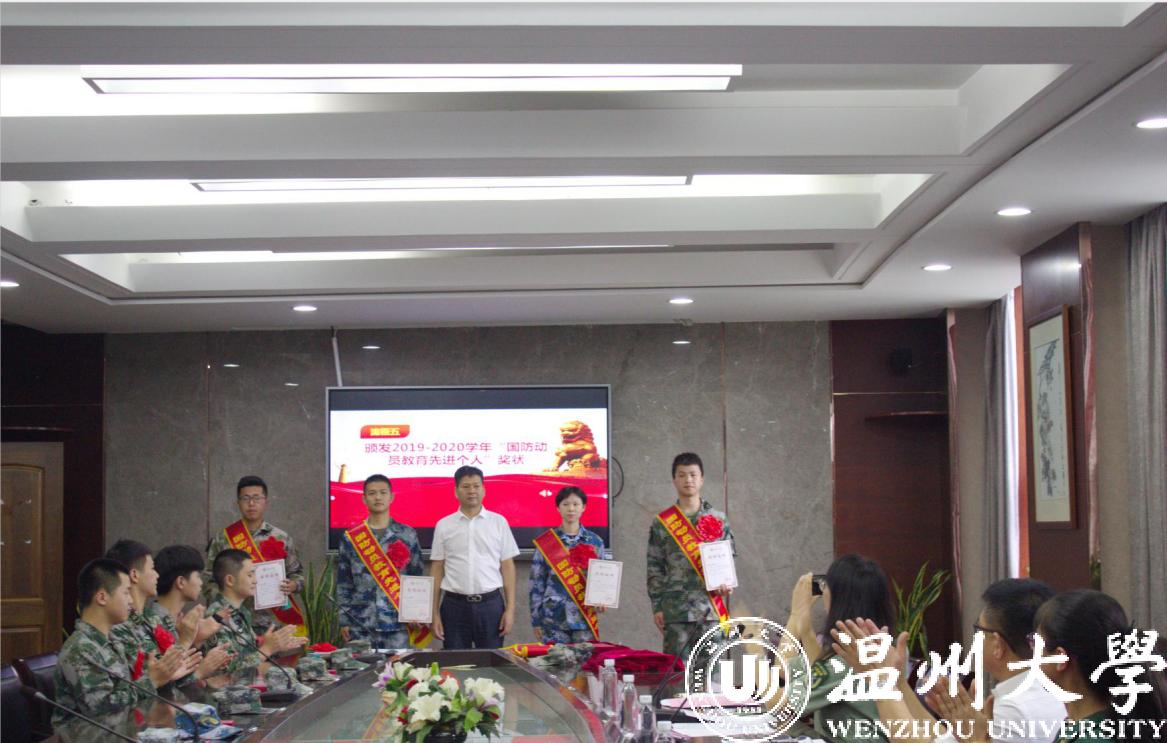 庄兴忠等为获得2019/2020学年学校“国防动员教育先进个人”颁发奖状,为获得“青春温大”·2020年度榜样人物荣誉称号的退役毕业生颁发荣誉证书,为军训教官团成员颁发纪念勋章,为全体退役毕业生赠送纪念品。