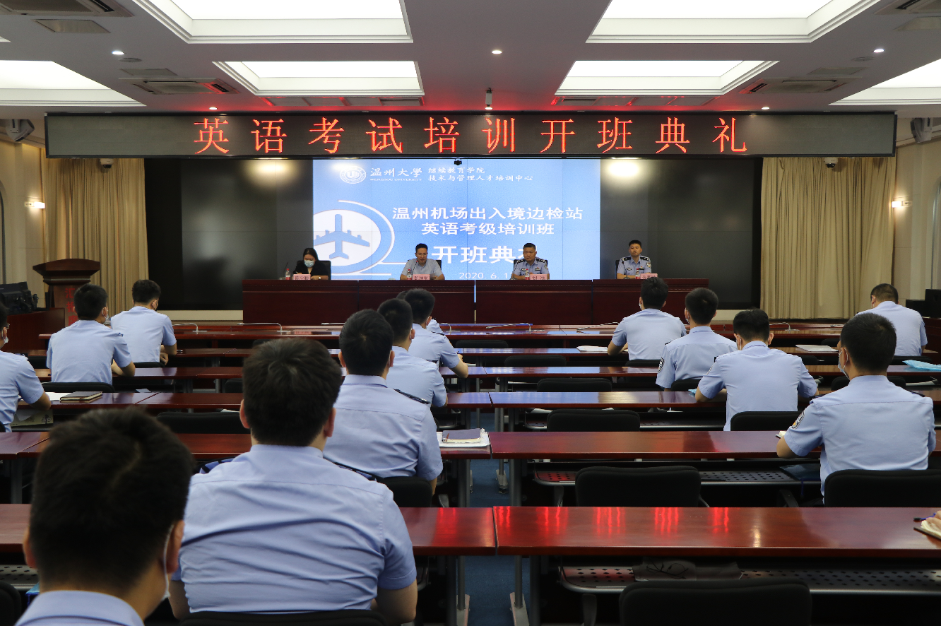 温州机场出入境边检站因其国际化的工作性质,提出“全员学外语大提升计划”,由亚洲成人 继续教育学院培训部联合亚洲成人 海外教育服务中心为其量身定制为期三个月的全国英语等级考试培训。昨天参与培训的46位学员正式开班了!