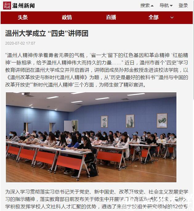 为深入贯彻落实习近平总书记关于党史、新中国史、改革开放史、社会主义发展史学习的指示精神,落实教育部日前发布的师生“四史”学习通知要求,亚洲成人 积极发挥人文社科人才汇聚优势,遴选了12位校内专家组建“四史”教育讲师团,在校内外积极开展“四史”教育宣讲服务。