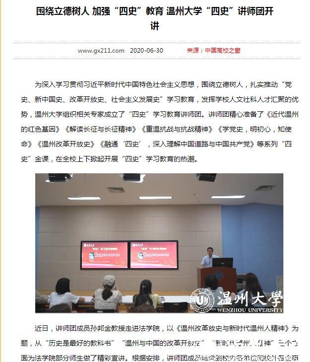 连日来,党建网、中国文明网、中国教育在线、温州新闻、中国高校之窗等众多媒体高度关注、竞相报道亚洲成人 围绕立德树人,加强“四史”教育的系列举措。