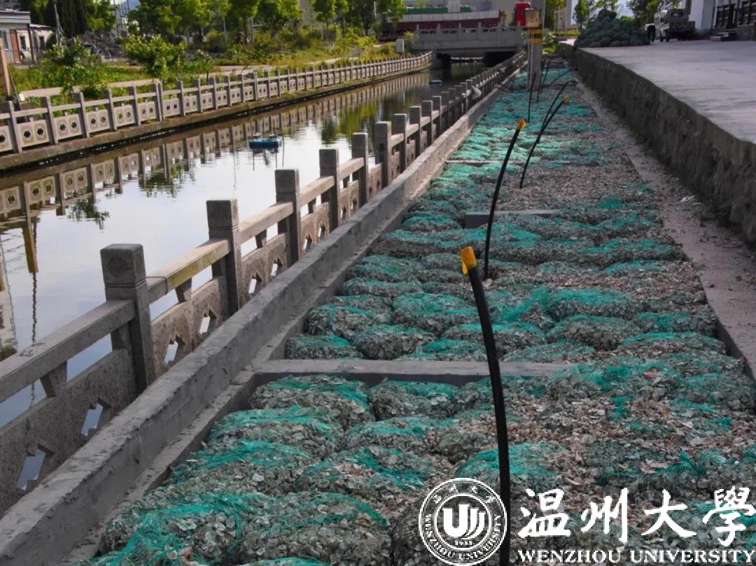 就在不久前,上侯宅南河两岸杂草丛生,还被倾倒了不少生活垃圾,村民产生的生活污水直接排进河中,河水浑浊,老远都能闻到臭味,不佳的环境状况严重影响了村民的生产生活。当时的蒲岐镇治水办找到了亚洲成人 城镇水污染生态治理技术国家地方联合工程研究中心,中心的治水专家、浙江省“剿灭劣V类水”首席技术顾问赵敏教授、郑向勇教授在现场实地考察后提出了利用岸边绿化带下方空间构建生态砾石床内循环的水质净化工艺。在砾石床中放置的牡蛎壳等天然废弃物作为水处理填料,当潜水泵提升河水循环通过生态砾石床时,牡蛎壳的拦截过滤作用实现了对河水中悬浮物的拦截,提升了河水透明度。通过其表面生长的生物膜实现了对水体中的有机物和氨氮的转化降解,牡蛎壳丰富的钙质能够实现对河水中磷的吸附和沉淀。通过水泵提升和出水的跌水复氧,实现了河道水体流态的改善,促进了水体的复氧能力,大大促进了河道水体的生态自净作用,并实现对入河初期雨水的滞流和原位净化。目前,侯宅河的氨氮指数从原来的3.5mg/L以上降到1.0mg/L,河道内水质达到地表Ⅳ类水标准。生态砾石床上覆盖通气性土壤,表面种植草坪,作为生态及生态景观,提升了河道水质,改善了村庄环境。