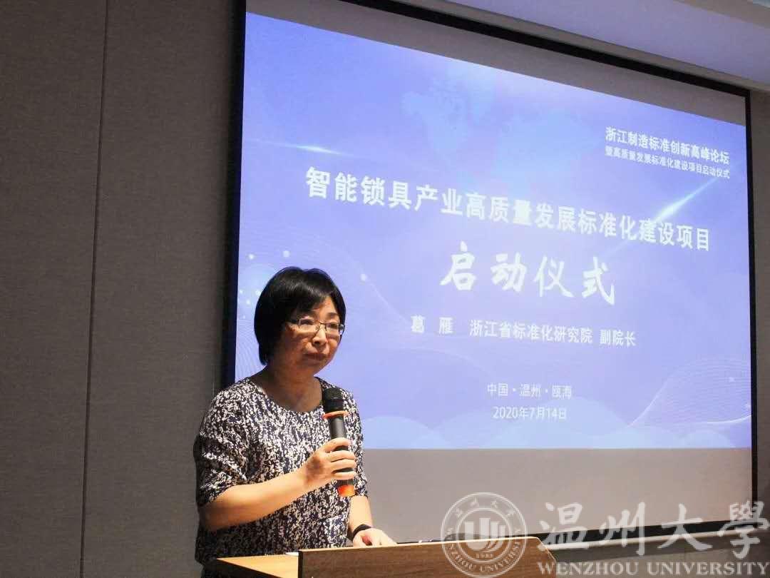 揭牌仪式后,浙江省标准化研究院副院长葛雁宣布“智能锁具产业高质量发展标准化建设项目”正式启动,并从国家标准化战略、双方合作的背景和意义、省标院支持产业高质量发展、标准化建设等方面发表重要讲话。