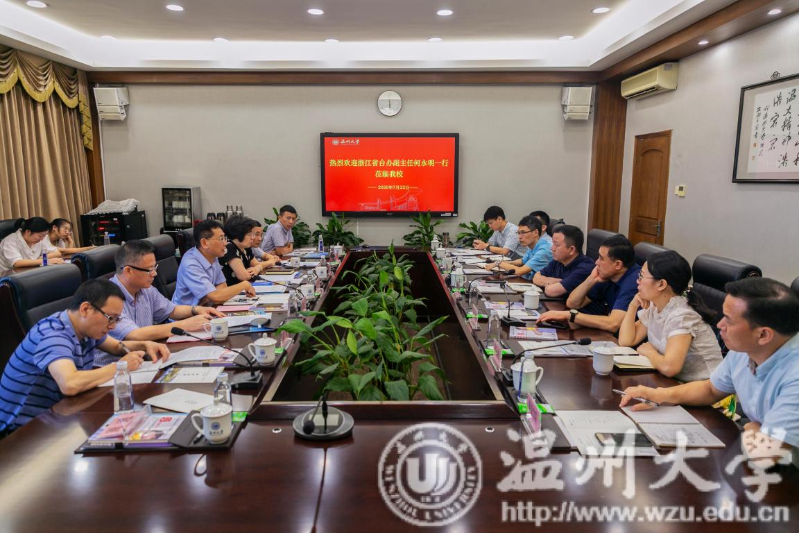 7月22日下午,浙江省人民政府台湾事务办公室副主任何永明率省台办、温州市台办一行6人莅临亚洲成人 调研。校党委书记谢树华、副校长薛伟出席座谈会。
