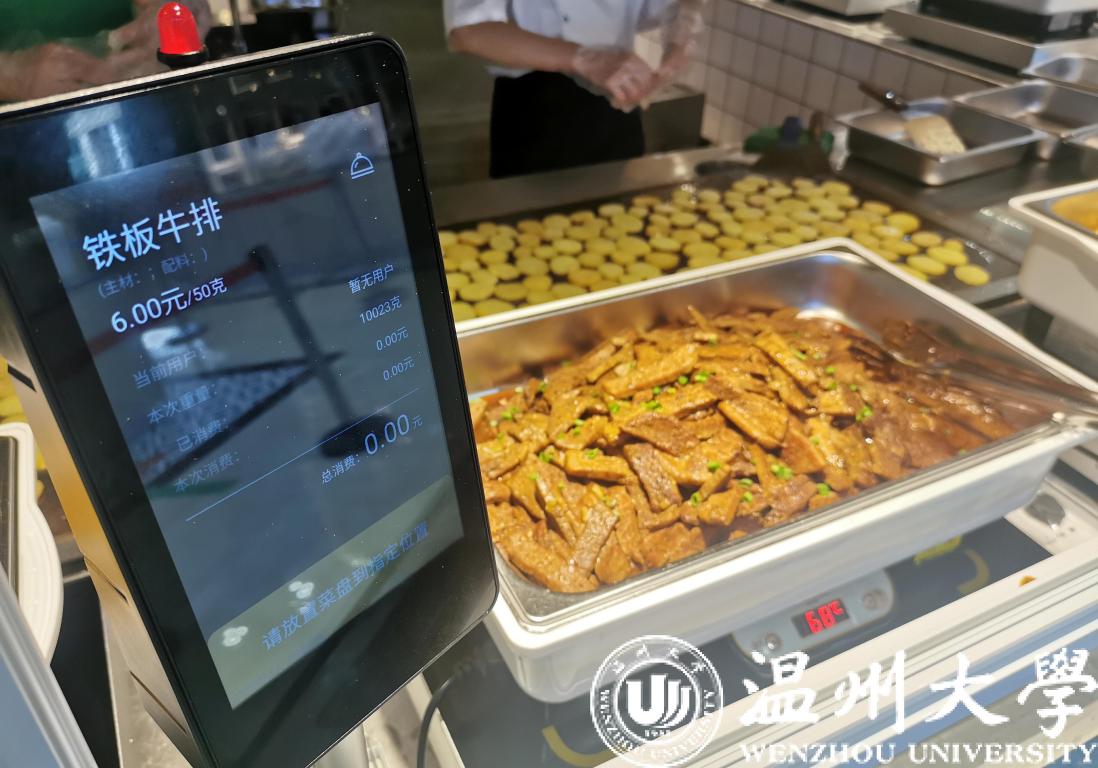 这是大学食堂嫁接了智能科技后的成果。用餐厅经理徐皓的话说,学生到这里用餐,可以实现“拿了就吃,吃完就走”。中间省却了常见的排队付款、排队打菜的拥挤场面。