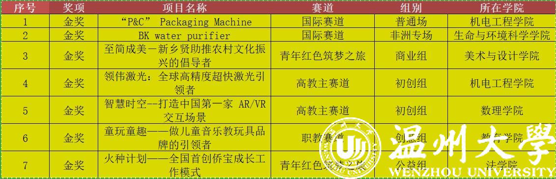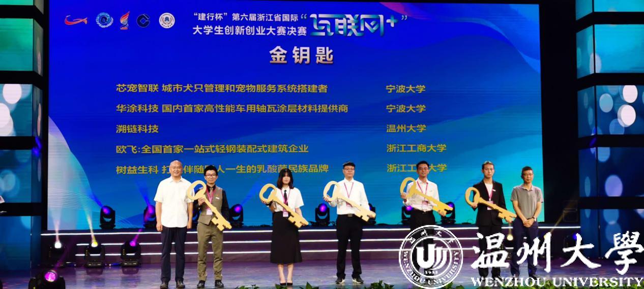 机电工程学院参赛项目《领伟激光:全球高精度超快激光引领者》和教育学院参赛项目《童玩童趣——做儿童音乐教玩具品牌的引领者》以小组第一代表本组别参加浙江省五强晋级赛(全省共13个项目,7个高校),并成功入围国赛。这是互联网+大赛以来亚洲成人 首次参加省五强晋级赛,也是亚洲成人 参赛历史上唯一一次2支队伍同时以小组第一入围国赛。机电工程学院参赛项目《溯链科技》还获得了由大创小镇、杭州市钱塘新区提供的金钥匙奖(全省仅五把)。