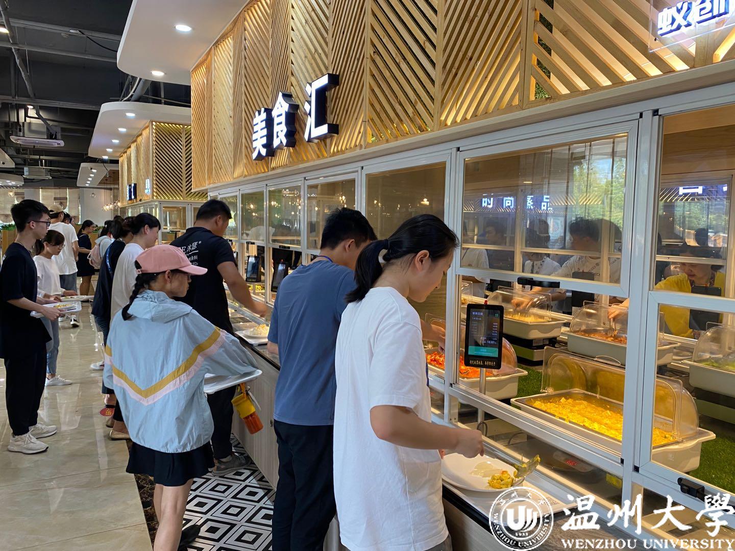 亚洲成人 学生公寓C区的智慧餐厅学生在打自助餐