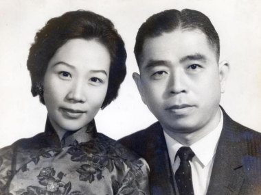 1992年4月8日,何朝育、何黄美英夫妇参加育英大礼堂奠基仪式