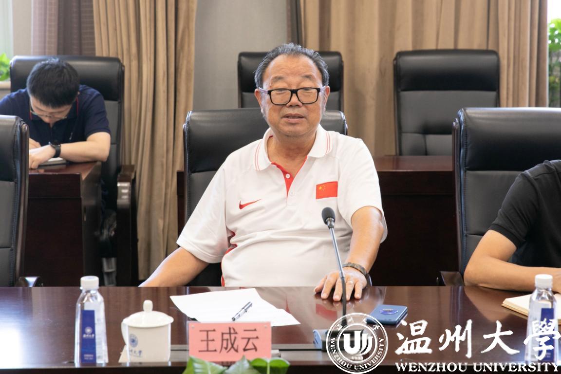 8月27日上午, 校党委书记谢树华会见了来校访问的中国龙舟协会副会长、省龙舟协会主席王成云一行,双方就成立温州龙舟学院的相关事宜进行了深入的商谈。副校长薛伟,省龙舟协会副秘书长、温州市龙舟协会秘书长金凯,温州市龙舟协会副秘书长阮永雷,体育与健康学院领导及校龙舟队教练员世界冠军朱敏圆老师参加了会议。