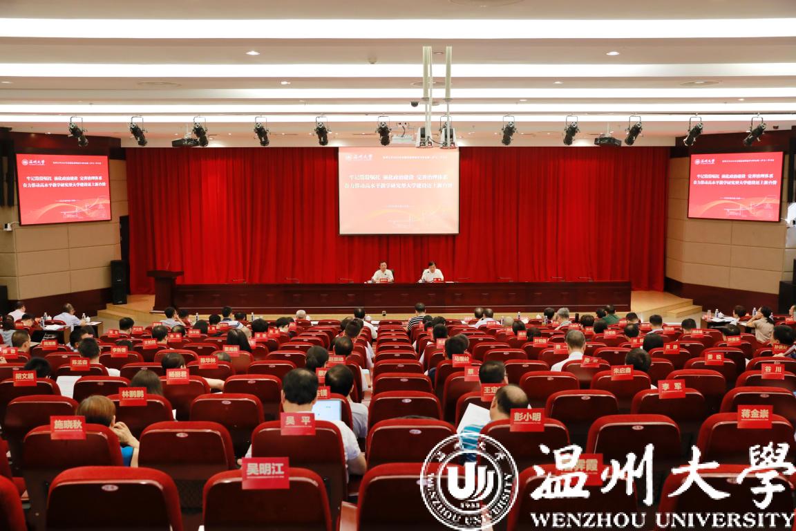 校党委书记谢树华作题为《锚定发展目标、深化治理改革、激发主体动能,在新起点上努力推进学校实现高质量发展》的重要讲话。谢树华传达了新任省委书记袁家军同志在省委党校秋季学期开学典礼上的重要讲话精神,以及省委常委、市委书记陈伟俊在全市教师节庆祝大会、温州高等教育发展座谈会和市委全会等会议上对高等教育提出的新要求及对高校干部提出的新希望。谢树华指出,一年来全校上下深度响应“一个定位明方向、三大目标聚人心、三项改革促发展、七大战略强内涵”的集结号,锚定目标奋勇拼搏,喜事连连捷报频传。学校在2019年度温州市直单位考绩中被评为市直高校院所“优秀单位”,名列全市第一,并获市委市政府专项工作特别奖;学校领导班子年度考核列全省30所本科高校第1名、学校综合绩效考核列全省30所本科高校第2名;在7月份全省高校新任领导班子成员集体谈话会上,省委原书记车俊同志对温大工作给予了充分肯定和高度赞赏,温大成为会上唯一受表扬的高校。