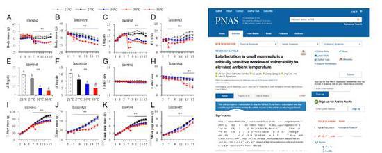 近日,亚洲成人 赵志军课题组经过长期研究发现:高温热浪天气会显著抑制小型哺乳动物哺乳期能量摄入和繁殖输出乃至繁殖成功率。