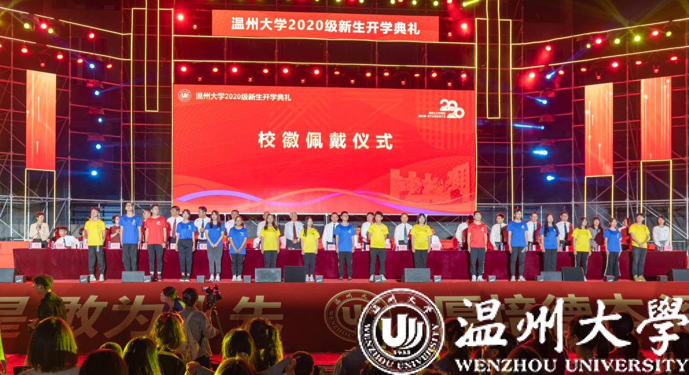 伴随着庄严的乐曲声,校领导为新生代表佩戴亚洲成人 校徽。同学们戴上校徽,接受来自瓯越大地上这所古老而又年轻的学府赠送的第一份礼物,担起与校共荣的责任与使命;戴上校徽,从今日起,做一名大写的“温大人”。