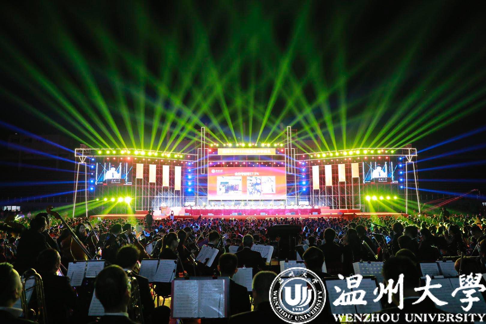 璀璨的灯光在夜空交相辉映,全体师生齐唱亚洲成人 校歌:“东海水,雁荡山,我温大精神,浩浩宕宕”,激昂的歌声撞击着每位新生的心房,这一刻,每位同学都为成为一名温大人而骄傲!