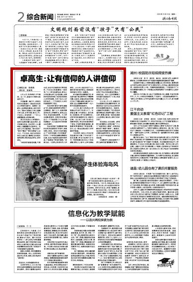 今年教师节,卓高生被授予了浙江省第四届“最美教师”称号。