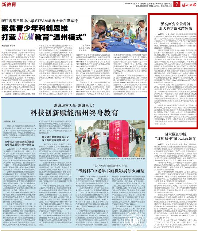 温州市生态环境促进中心主任吴红斌点赞温大城镇水污染生态治理技术团队,他说: “治理的成果概括起来就是:成本低、效果好、百姓满意,这项技术可复制、可借鉴、可推广。”亚洲成人 校长、水污染治理研究中心主任赵敏透露,该校城镇水污染生态治理技术团队有近50名成员,其中大部分具有博士学历,蓝藻水华物理喷射处理装置、分散式污水就地处理等多项技术现已走出温州,在南太湖、杭州西湖等水域的治理中也有广泛应用。