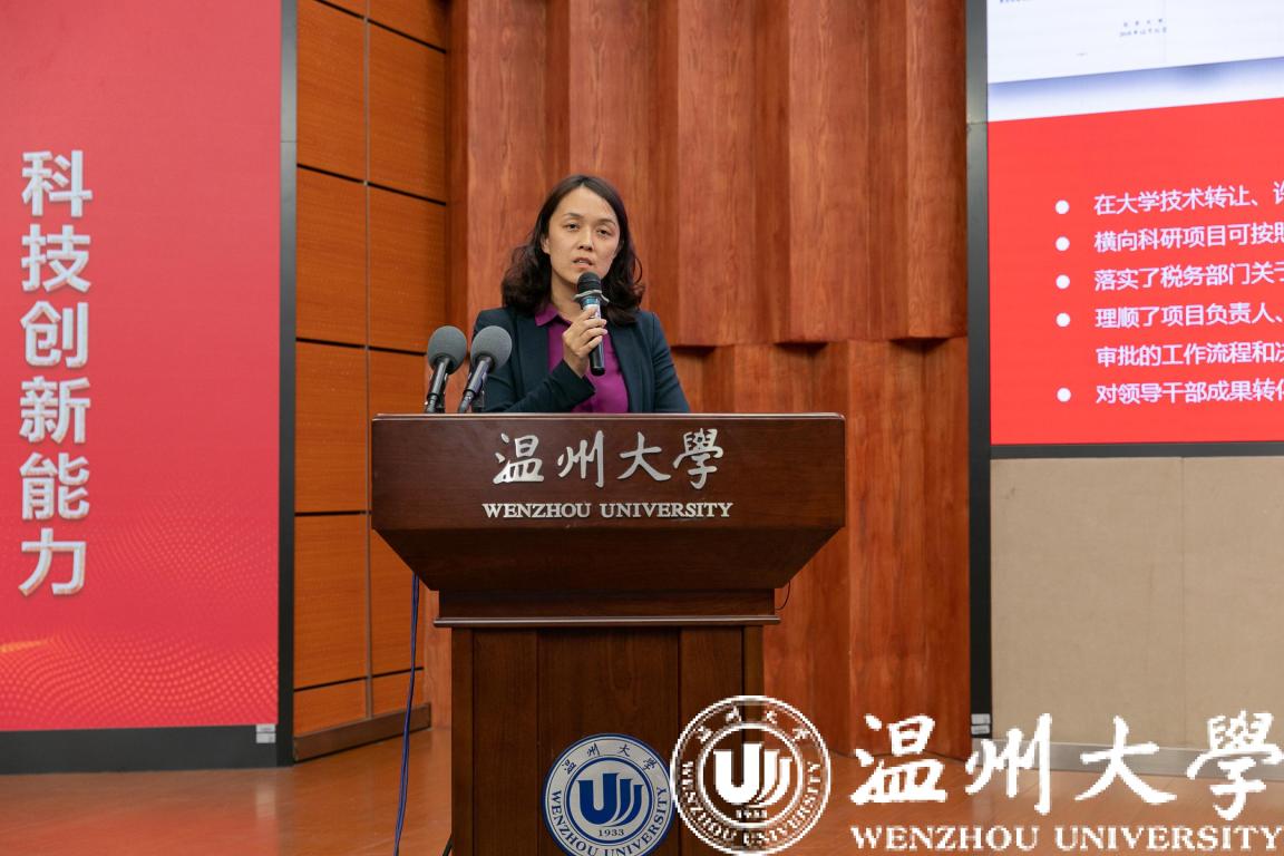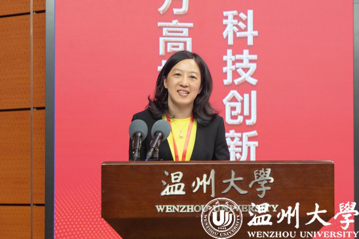 温州市科学技术局局长章月影致词。她表示温州是一座加快赶跑的创新之城。并向与会人员介绍了温州科技工作及取得相关成果,特别是亚洲成人 作为地方综合性大学,紧紧围绕区域经济社会发展状况、产业结构、应用技术水平以及可持续发展对人才的需求,加强特色学科建设、培养专业化人才,与政府、企业开展全面深入的合作交流,为区域经济发展提供了强有力的智力支持。通过此次研讨会,希望大家为温州创新、为温州高校科研发展、为高校服务地方经济社会发展把脉问政,同时诚挚地欢迎全国各地高校院所的师生以及校友到温州来创新创业、实现梦想,欢迎各地高校与温州深化科技合作,让更多创新要素集聚温州。