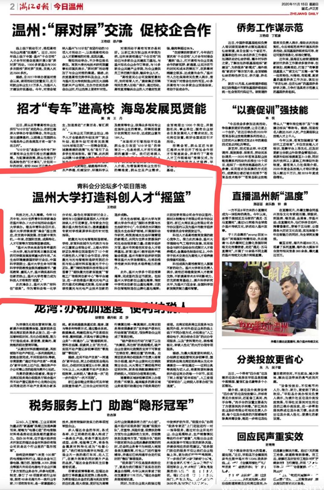 科技之光,久久璀璨。今年10月中旬,2020世界青年科学家峰会在温州举办,7大分论坛活动由亚洲成人 承办。继去年青科会召开后,亚洲成人 持续承接“峰会”溢出效应,在交流中谋发展、在创新中育先机,一年来,在国际交流、成果转化、人才引育等方面取得显著成效。