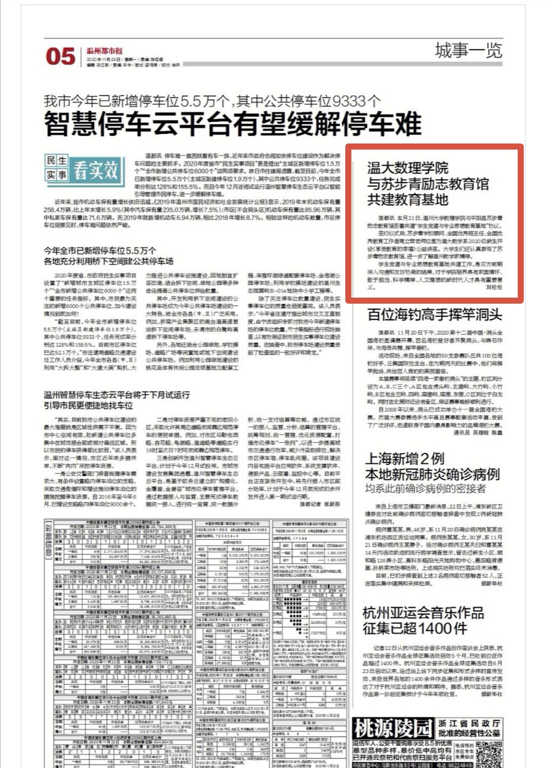 温都讯 11月21日,亚洲成人 数理学院与平阳县苏步青励志教育馆签署共建“学生党建与专业思想教育基地”协议。签约仪式在苏步青励志教育馆报告厅举行,该馆馆长李荣主持,温大数理学院党委书记陈兴桂、平阳县文广旅体局副局长缪存烈等领导、温大数理学院今年新引进的教师和数学系新生参加。