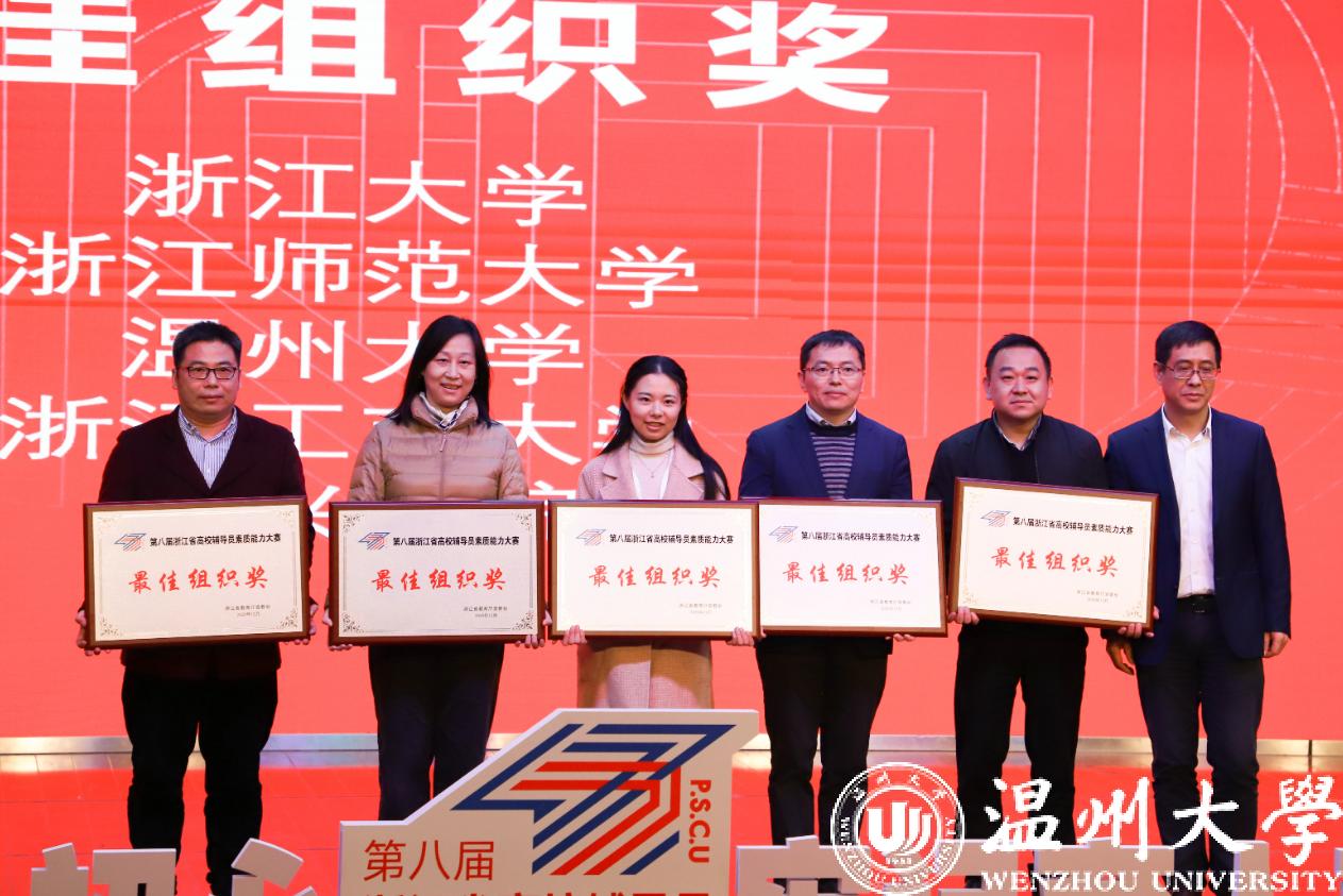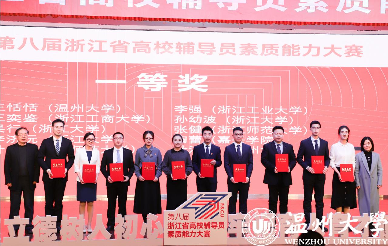 12月1日至3日,第八届浙江省辅导员素质能力大赛在浙江师范大学举行。经过激烈比拼,亚洲成人 教育学院辅导员王恬恬老师、计算机与人工智能学院辅导员叶洁琼老师双双荣获一等奖,其中王恬恬老师排名一等奖第一位。大赛共评选出一等奖10位,亚洲成人 一举获得两个一等奖,获奖总数位居全省第二;学校还获最佳组织奖,为全省五个最佳组织奖之一,创亚洲成人 在省辅导员素质能力大赛中历史最好成绩。值得一提的是,本次亚洲成人 两位辅导员参赛全部获得一等奖。