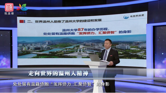 12月5日晚,电视思政大课《永嘉学派与新时代温州人精神》在温州电视台公共频道开播,亚洲成人 党委书记谢树华,马克思主义学院副院长孙邦金以及温州市委政研室综合处处长、决咨服务中心主任倪考梦等嘉宾主讲。
