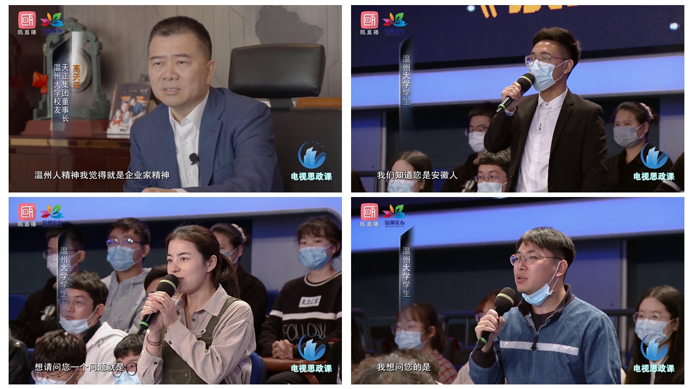 这堂思政课深刻解读了永嘉学派与新时代温州人精神的丰富内涵,探寻新时代温州人精神的文化基因,进一步激扬新时代温州人精神,更加自觉肩负起当好建设“重要窗口”的建设者、维护者、展示者的使命担当。期间,亚洲成人 校友、天正集团董事长高天乐通过视频谈了他对新时代温州人精神的理解。亚洲成人 学生代表在节目现场与授课嘉宾进行了交流互动。