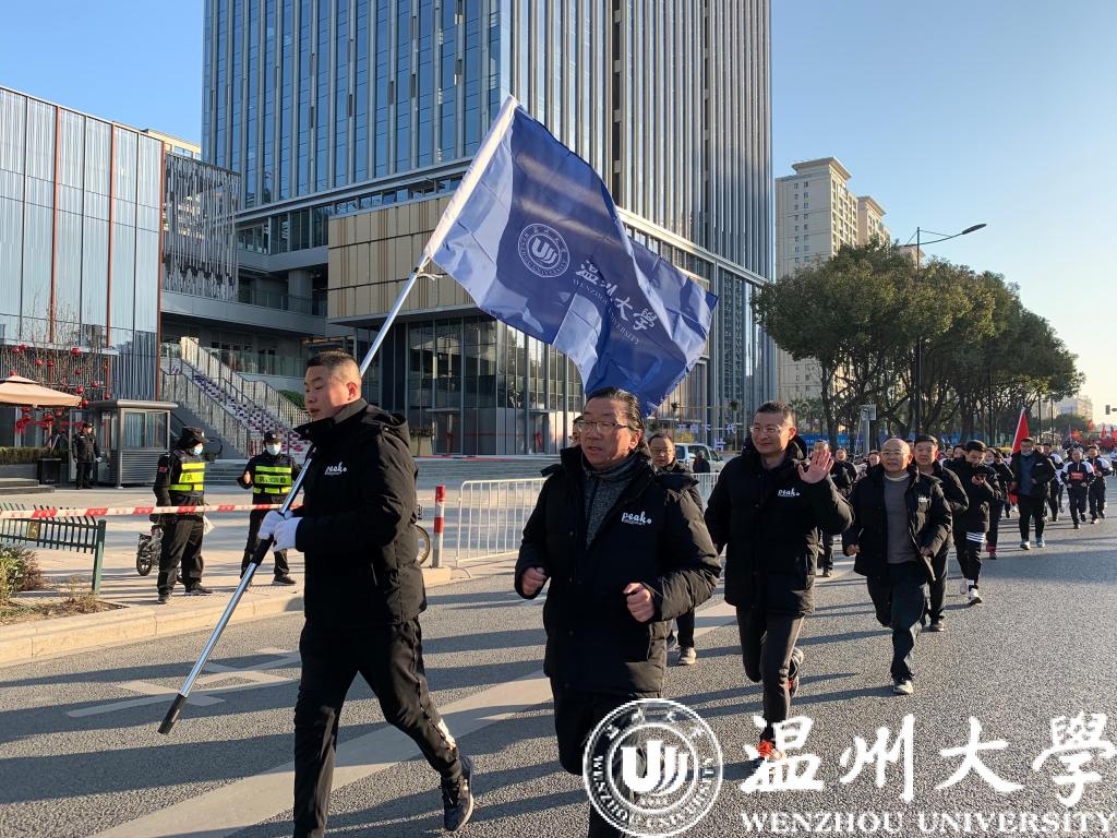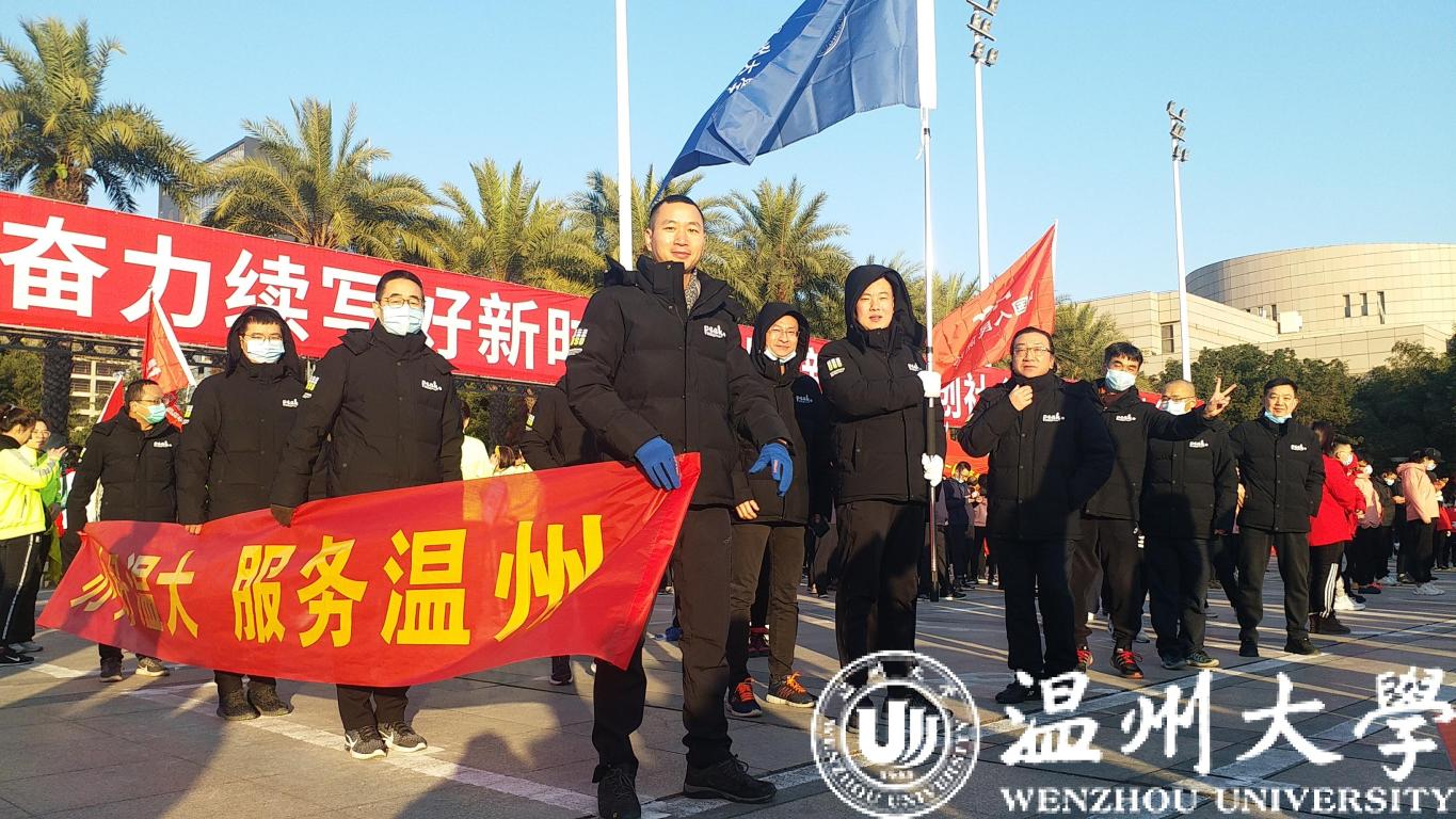 元旦清晨,温州世纪广场迎来了新年的第一缕阳光,温州市元旦升国旗仪式暨“中国金茂杯”健身跑举行。亚洲成人 20位教职工在副校长蔡曙光的带领下与全市近5000余人以健身跑的方式迎接新年的到来。