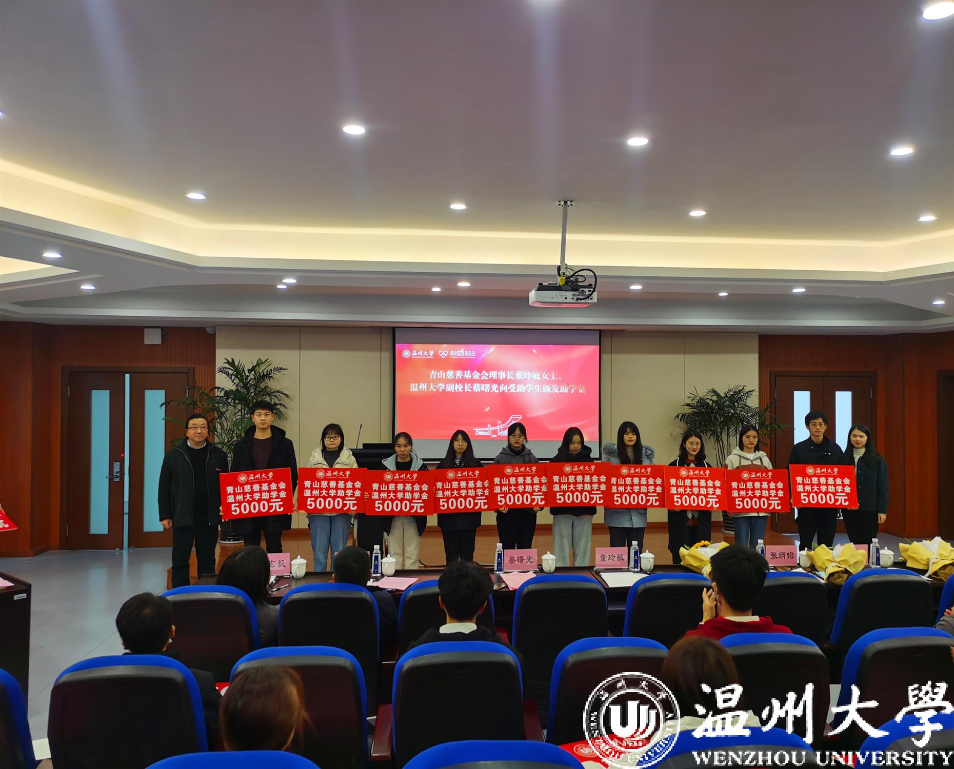 蔡曙光副校长与董玲敏理事长向30名受助学生颁发了每人5000元的助学金。