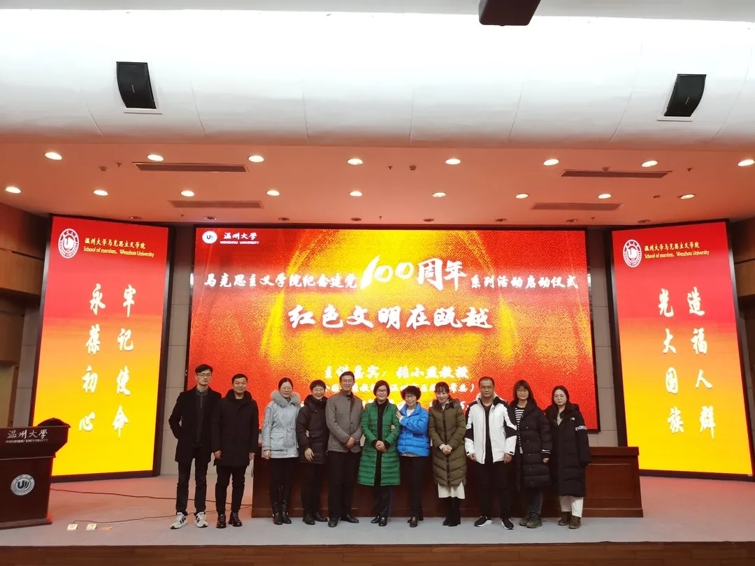 “胸怀千年伟业,恰是百年风华”,1月4日晚,马克思主义学院在育英图书馆二楼报告厅隆重举行庆祝建党100周年系列活动启动仪式,邀请全国优秀教师、原温州政协常委张小燕教授做开篇第一讲:红色文明在瓯越。学院党员教师、全体研究生、本科生参加活动,学院党委书记王柏民主持。