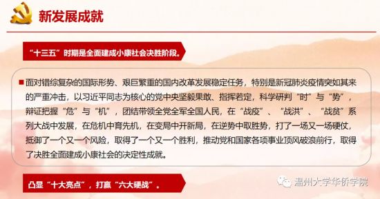 通过本次讲座,我对于祖国过去一年和“十三五”期间我国取得的伟大成就、在发展过程中面临的新形势以及所处的发展阶段有了全面深刻的认知。