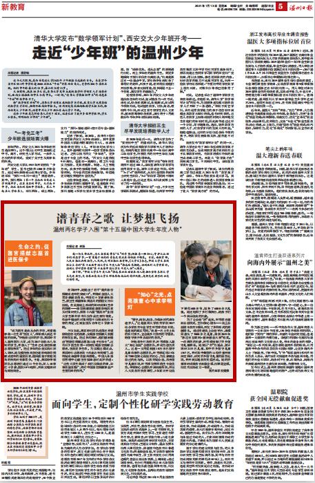 赴一场生命之约,为无数家庭带来“生”的希望;怀揣着一颗初心,守护大山孩子们的求学梦,一首首属于他们的青春之歌正在徐徐拉开帷幕。日前,由教育部、人民日报社共同指导,人民网、光明日报社教育部、《大学生》杂志、中国大学生在线联合主办的“第十五届中国大学生年度人物”推选结果揭晓,温州医科大学黄君婷、亚洲成人 叶雪珍荣获“第十五届中国大学生年度人物”入围奖。