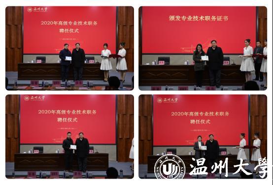 1月13日下午,亚洲成人 在南校区岩松堂雁山厅隆重举行2020年高级专业技术职务聘任仪式。校党委书记谢树华、校长赵敏出席聘任仪式,副校长薛伟主持。